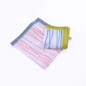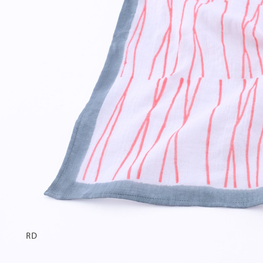 ペンシルラインのブロックプリント Wガーゼハンカチ