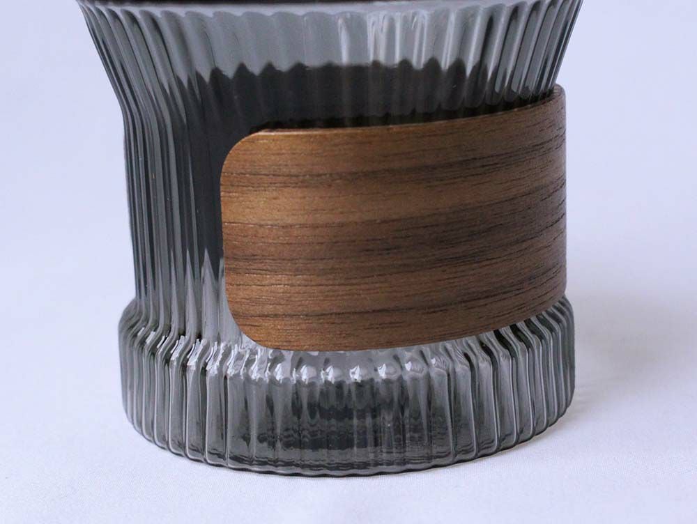 ガラスは耐熱性で、ウォルナット材のスリーブがデザイン性と機能性を出してくれています