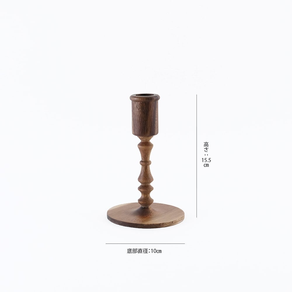 温もりある木製のキャンドルスタンド。アンティークな雰囲気をまとったデザインは、どこか懐かしさを感じさせる佇まい。自然な木目の風合いと、やわらかなフォルムが空間に優しく馴染みます。クリスマスやお誕生日などの特別なシーンはもちろん、いつもの食卓にもさりげなく灯りを添えて。テーブルコーディネートの主役にも、引き立て役にもなる存在感です。飾るだけで、日常が少しだけドラマチックになる。そんなスタンドです。