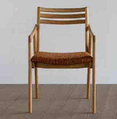 無垢材の味わいタップリ、それでいて軽快なイメージのアームチェアです。木部は、全て面取りがなされて優しい手触りです。湾曲した背板で、背当たりいい掛け心地です。