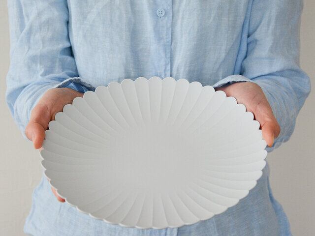 パレスプレートは「パレスホテル東京」のために作られた特別なプレート。華やかでありながら繊細な美しさを併せ持つ、花の形が印象的なそのデザインは、1616/arita japanのクリエイティブディレクター、柳原照弘が手がけました。