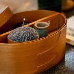 小さなシェーカーで針山をつくりました。お気に入りの道具が裁縫箱に入っていると針仕事も楽しくなります。シェーカーの木の暖かさと、素材となっているチェリー材の色に合わせてセレクトしたファブリックのピンクッションは、日常の作業を楽しい時間にしてくれそうです。