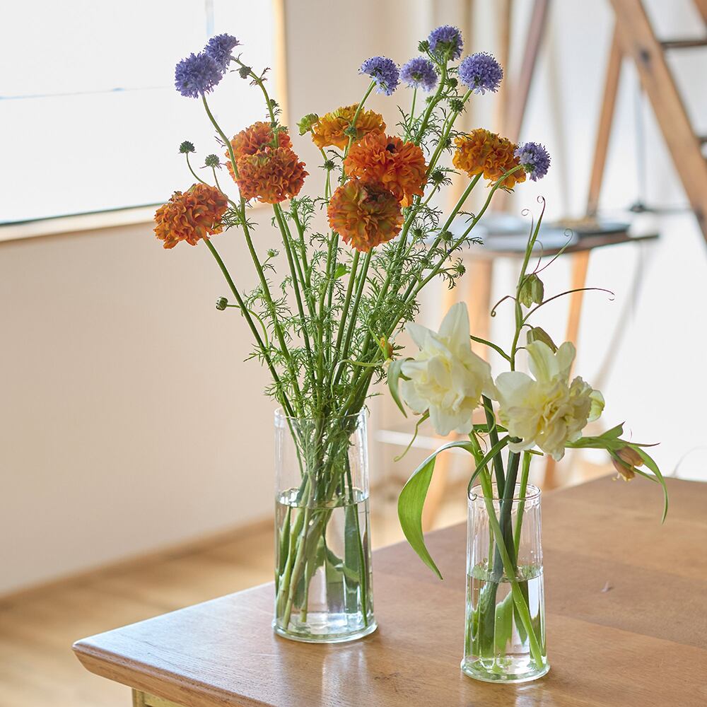 でこぼこのないすっきりとしたシンプルなデザインなので使いやすく、活ける植物を選ばないストレートなアイテムです。